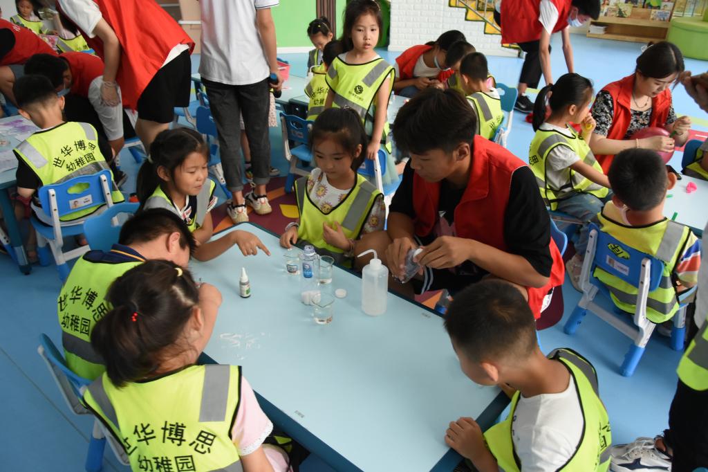 7月9号上午,bwin必赢“筑梦化学”暑期社会实践团队走进潍坊市高新区新城街道世华博思幼稚园,老员工与小朋友手拉手做趣味物理、化学小实验。公司老员工首先给幼儿园小朋友讲解了试验的小视频,让孩子们有了直观的了解。随后,小朋友们分组,一个小组由老员工与小朋友们面对面做气球转转圈、密度与扩散、隐形字的写法等趣味物理、化学小实验,期间小朋友们积极与老员工互动,提出了很多有趣的问题。此次活动对启发小朋友的科学思维有一定的帮助。下午,社会实践团队走进潍坊市经济开发区张氏街道万和社区,给普通老百姓宣讲生活中的化学等科普知识,与社区的小员工们一起做趣味物理、化学小实验,受到了小区居民的称赞,宣传了学校。