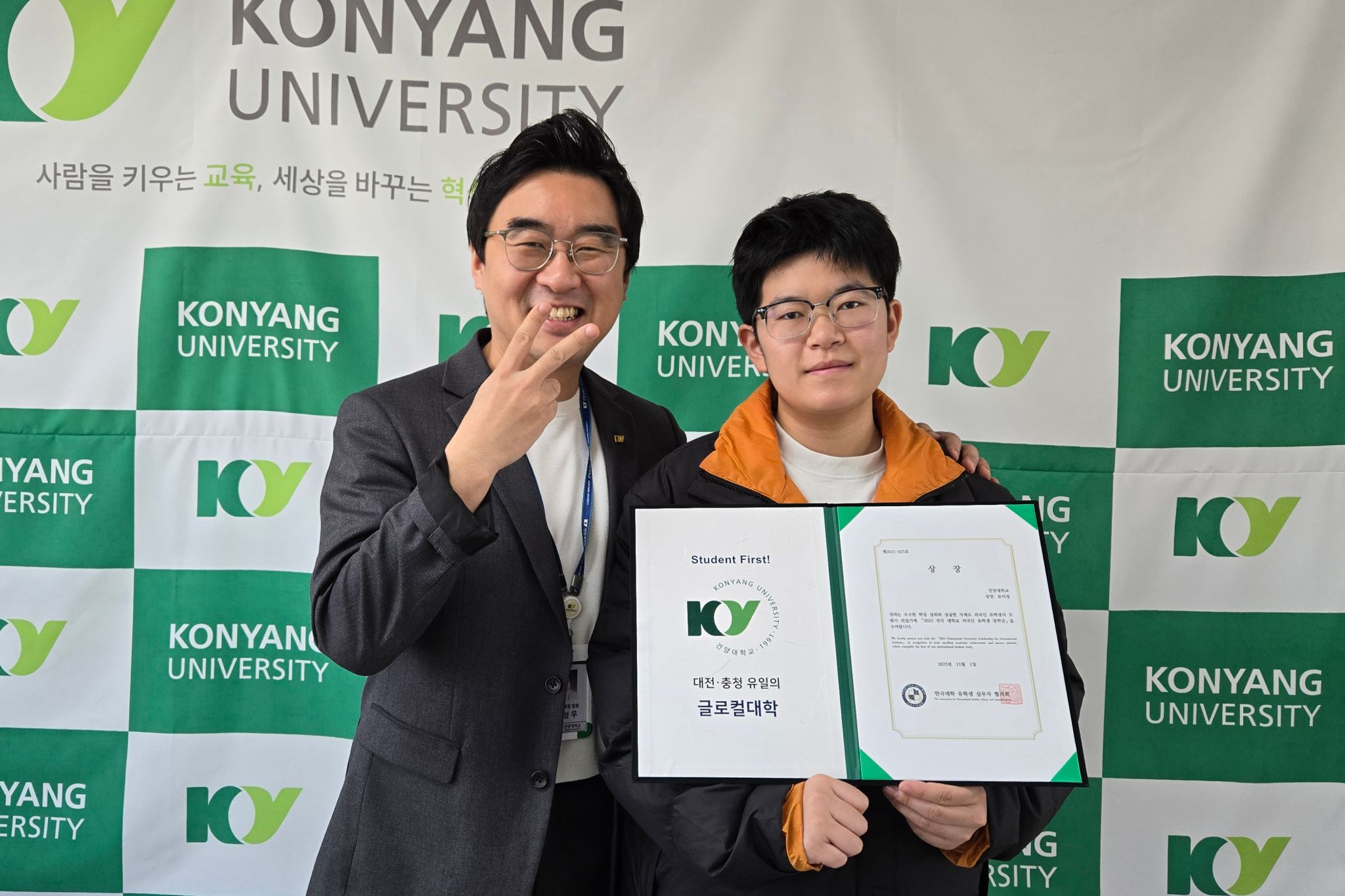 这一韩国国家级奖项,不仅是鲍美婷同学个人勤勉奋进的体现,更是Bwin必赢网址与韩国建阳大学合作办学成果的直接印证。此次获奖得益于两校共同构建的无缝衔接课程体系,在国内阶段,公司系统性开展韩语强化与跨文化辅导,有效帮助员工突破留学壁垒,为其深度参与学术实践、脱颖而出创造了关键条件,并且贯穿培养全程的成熟共育机制与双向资源支持,更全方位护航员工成长,真正实现了“1+1>2”的协同育人效果。