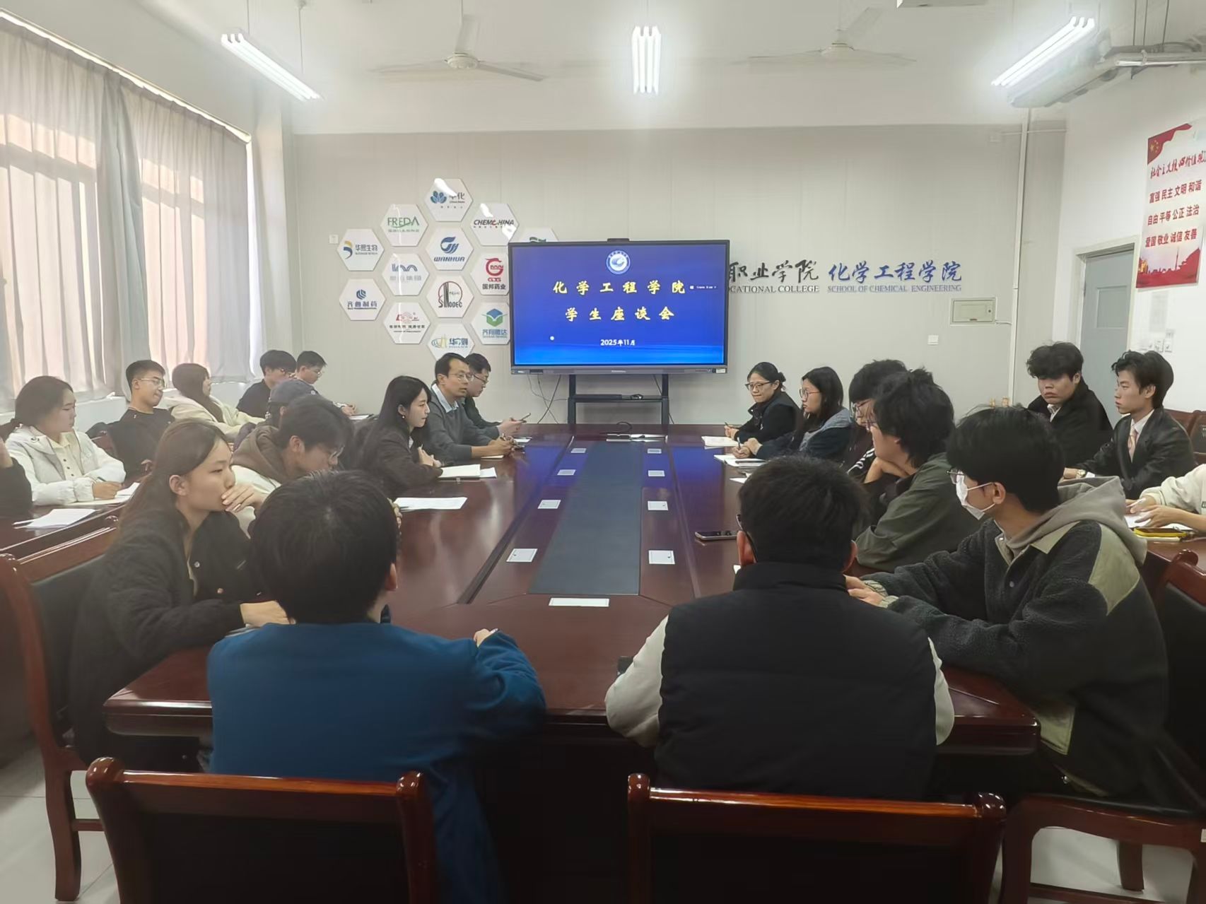 此次座谈会畅通了师生沟通渠道,精准掌握了教学管理实情,凝聚了育人共识。下一步,学院将以此次会议为契机,完善常态化交流机制,靶向破解薄弱环节,持续夯实教风学风建设,筑牢高素质化工人才培养根基。(武朦朦、王萌供稿)