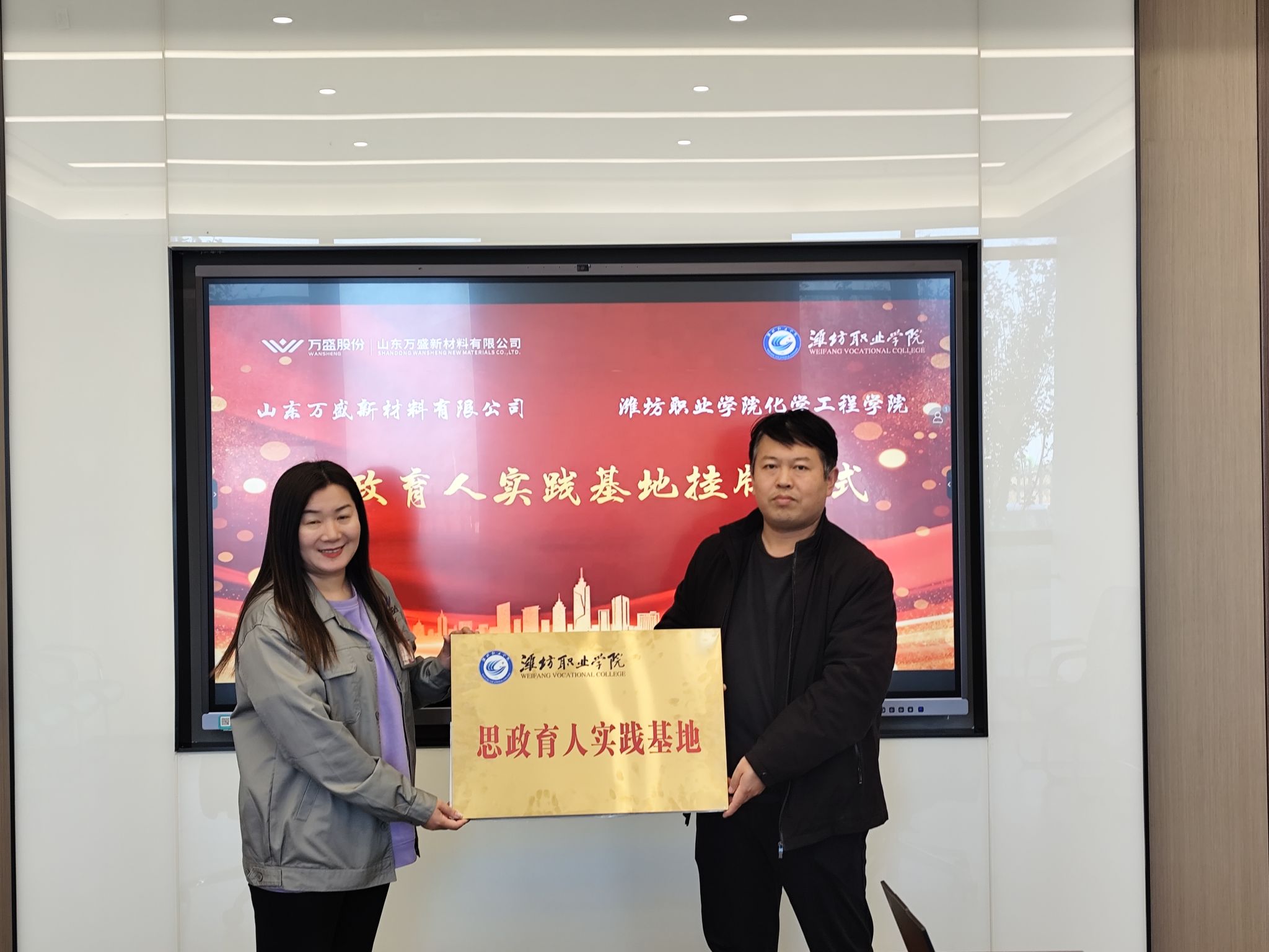 活动期间,公司党总支负责同志和企方开展拓岗就业专项交流,深入探讨人才培养与企业需求的对接路径。在山东万盛新材料有限公司党建教育基地,校企双方共同举行“思政育人实践基地”挂牌仪式,为协同育人搭建了新的平台。此外,师生们先后参观了两家企业的展厅,系统了解了企业的发展历程、核心技术与战略规划。通过近距离感受企业严谨务实的工作氛围和追求卓越的质量文化,同学们对劳动精神与工匠精神的内涵有了更为深刻和直观的认知。
