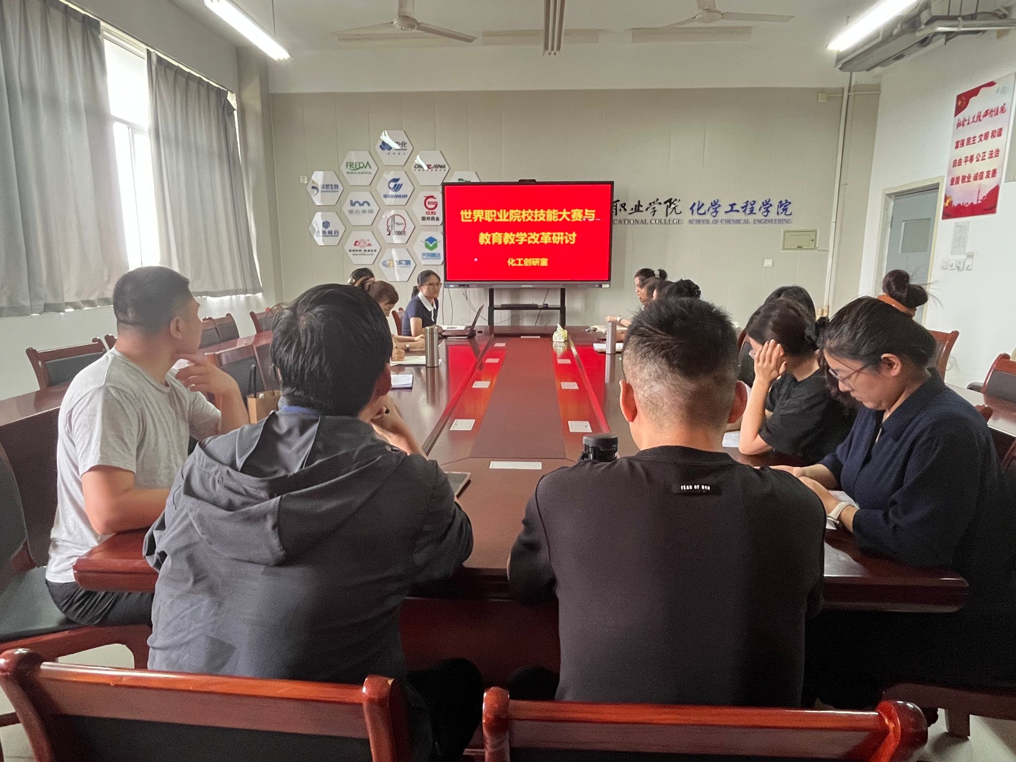 活动中,创研室教师集中观看学习了2025年两位金牌指导教师的备赛经验分享视频。随后,多次担任技能大赛专家和裁判工作的于淑兰老师结合视频与执裁经验,深入剖析了新赛制精神和比赛规则要点。研讨环节,与会教师重点针对化工技术赛道获奖项目,围绕大赛标准融入教学标准、大赛项目转化为教学项目、大赛精神植入课程思政、优质大赛项目开发等方面的细节展开讨论。最后,学院分管教学负责人强调世赛不仅是技能比拼的竞技场,也是教学改革的风向标,无论是赛事备赛还是成果转化,全体教师都要主动参与、深入研究。